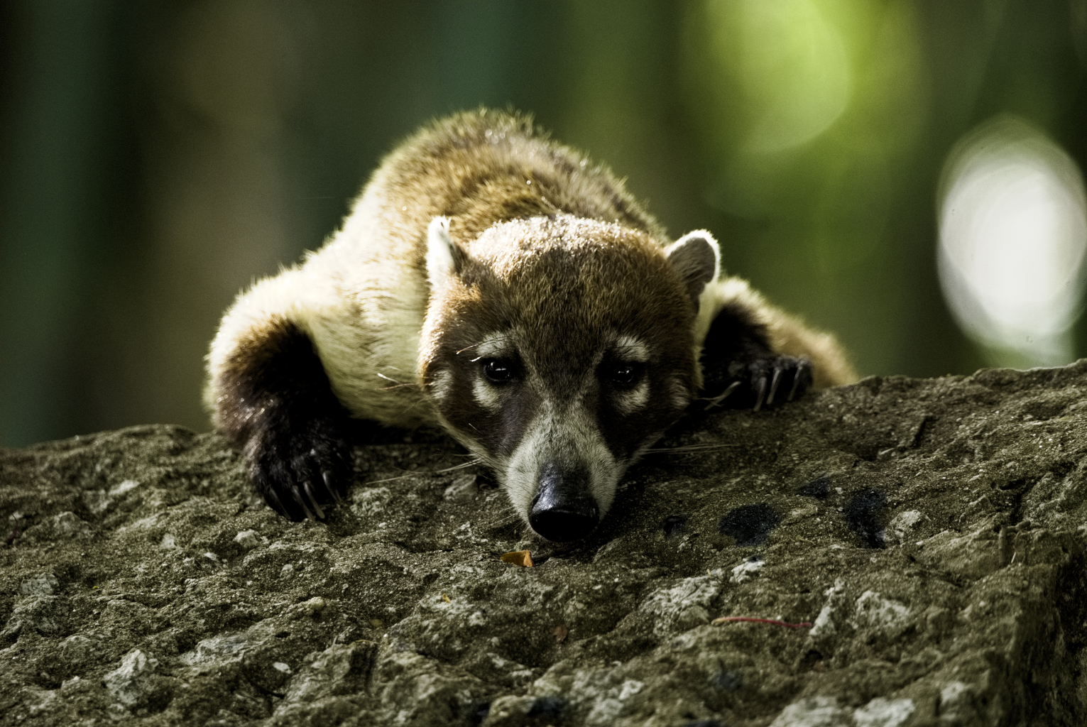 Als wir in Villahermosa ankommen, treffen wir auf ein lustiges Tier. Wir entdecken einen Nasenbär unter einem Auto und sind hin und weg. Als wir uns weiter umschauen, sehen wir sie überall. Nasenbären, Waschbären, viele bunte Vögel und im Stadtteich einen großen Kaiman ( Krokodil). Klar was sonst. Und auch hier sehen wir wieder Olmekenköpfe.